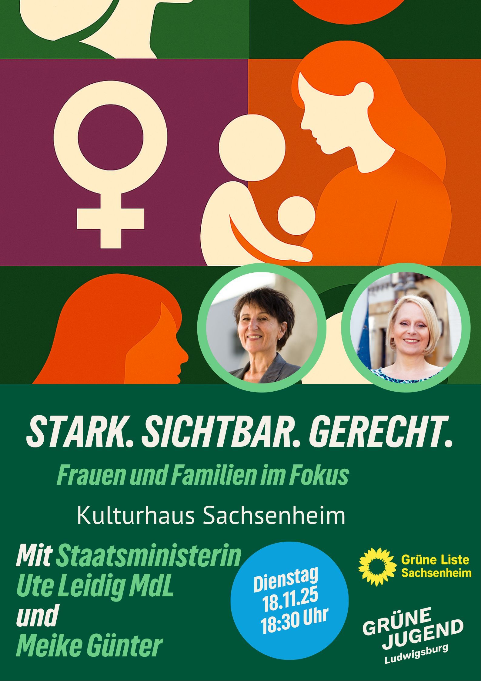 Moderiert wird die Veranstaltung von der Grünen Jugend Kreis Ludwigsburg, die gemeinsam mit der Grünen Liste Sachsenheim und Meike Günter zum Austausch einlädt. Kommt vorbei, bringt eure Fragen mit und diskutiert mit uns über gerechte Chancen, Vereinbarkeit und die Zukunft einer solidarischen Gesellschaft.
